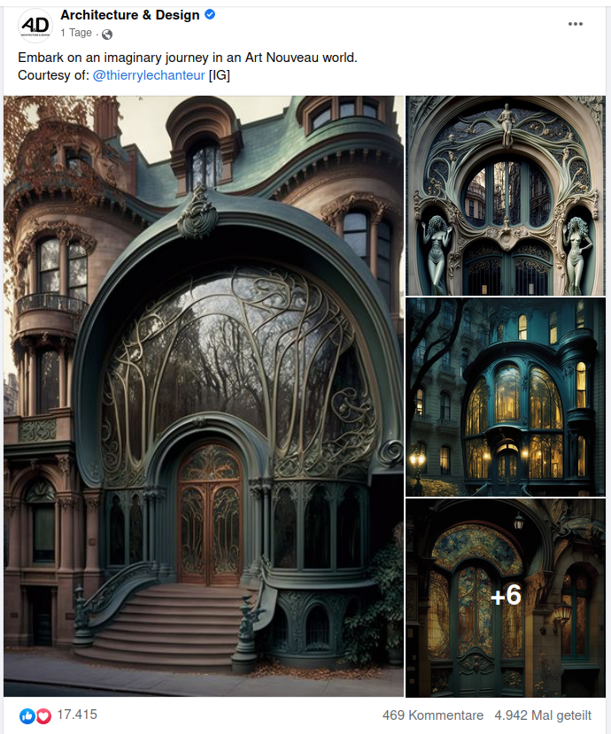 Google leads us to this FB post of a big architecture photography channel, where already we are to "Embark on an imaginary journey in an Art Nouveau world":